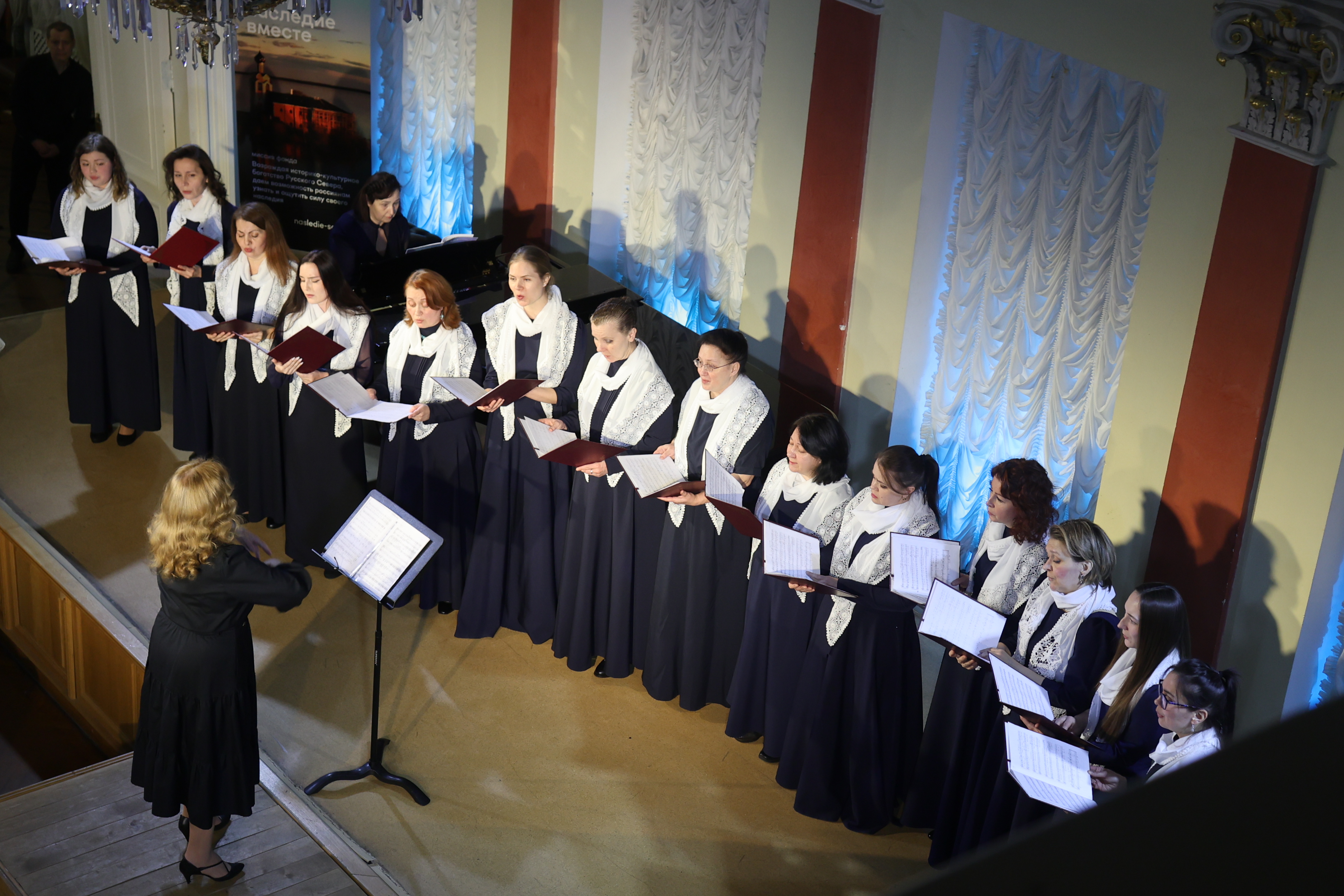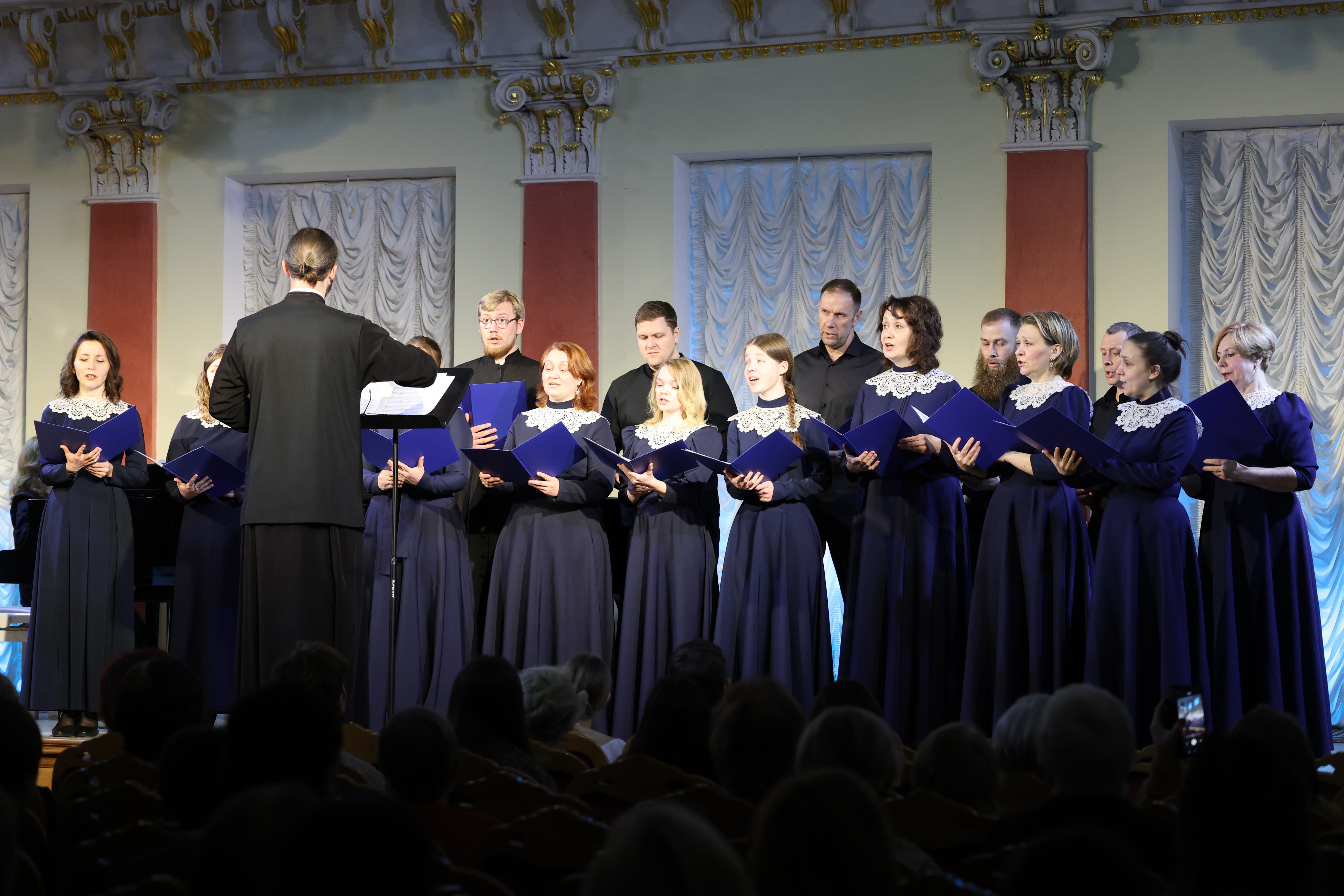 В пятничный вечер на сцене прозвучали церковные песнопения, патриотические композиции. Значительная часть вошедших в программу произведений создана вологодскими авторами – это и лирика Николая Рубцова, и музыка композиторов Валерия Гаврилина, Александра Якуничева, Надежды Берестовой.